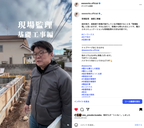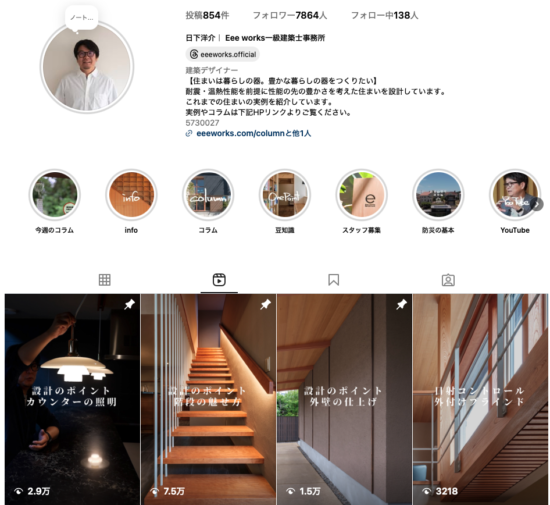 今ではeeeworks.official アカウントと言えばリール動画で現場解説